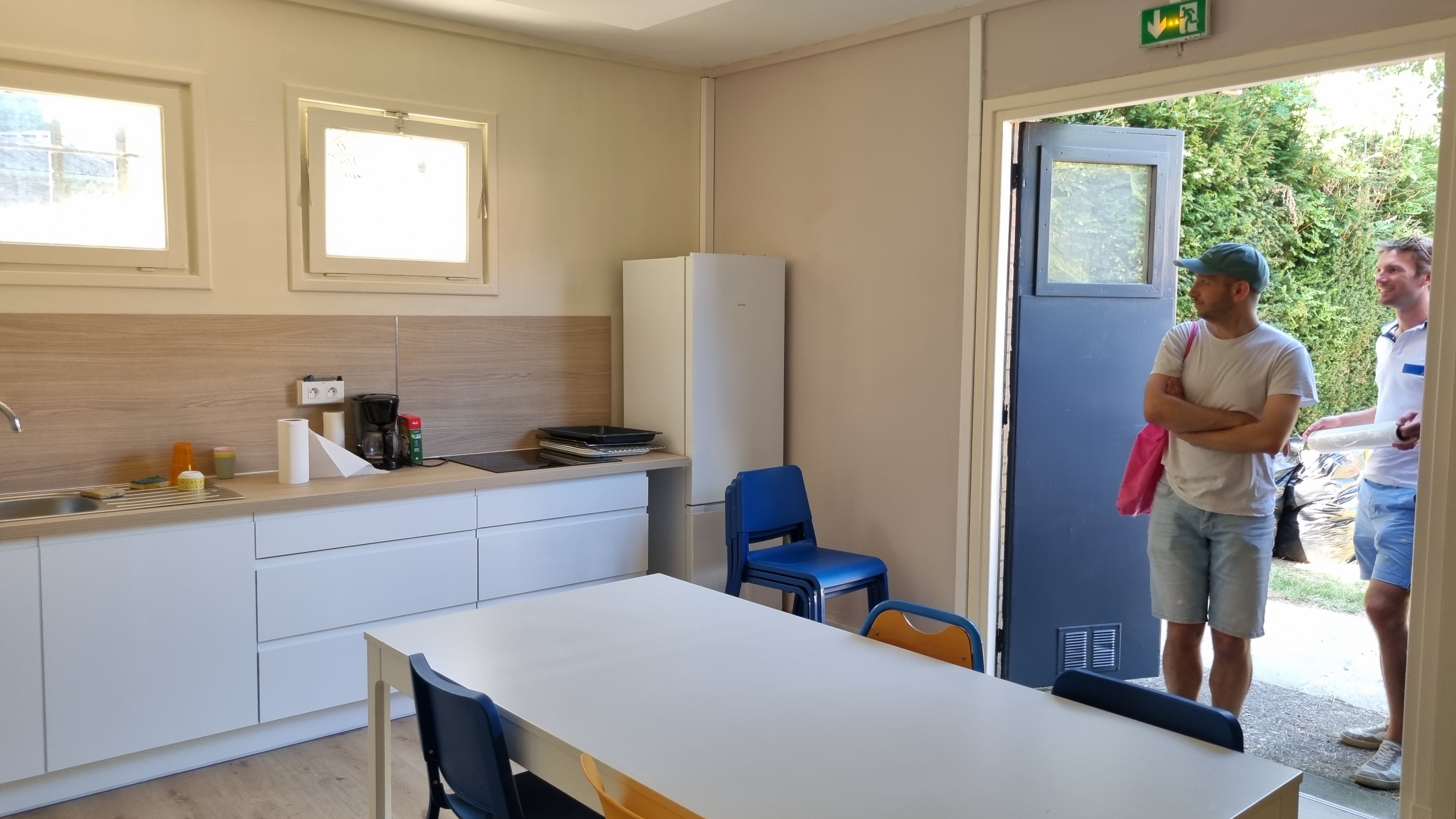 Les espaces cuisine ont été rénovés et sont prêts à accueillir des ateliers. À l’extérieur, la pergola apporte de l’ombre, le jardin est nettoyé, le carré potager, le compost et la cabane redonnent vie à l’espace. Le lieu est désormais chaleureux et pleinement prêt pour les enfants.