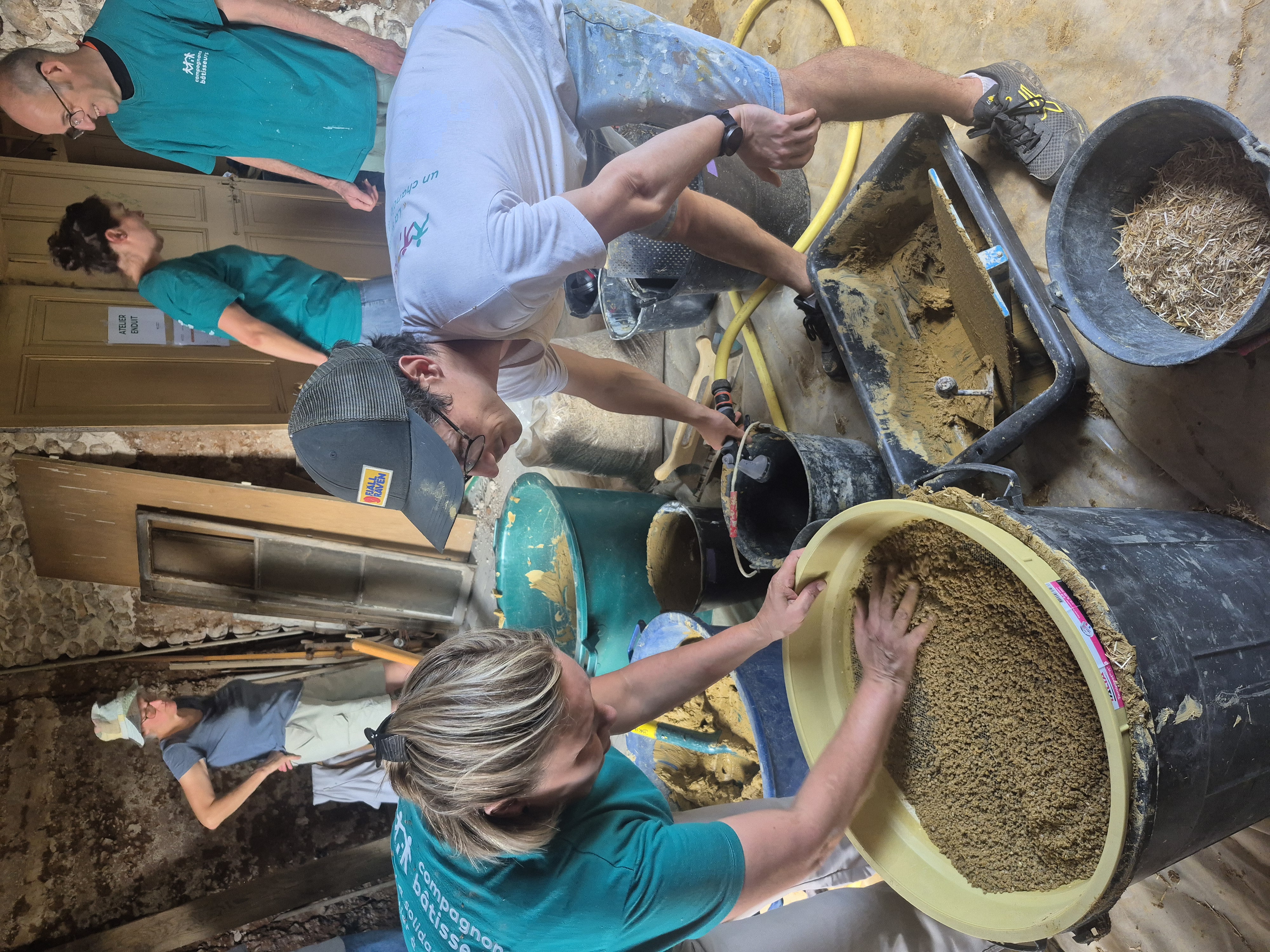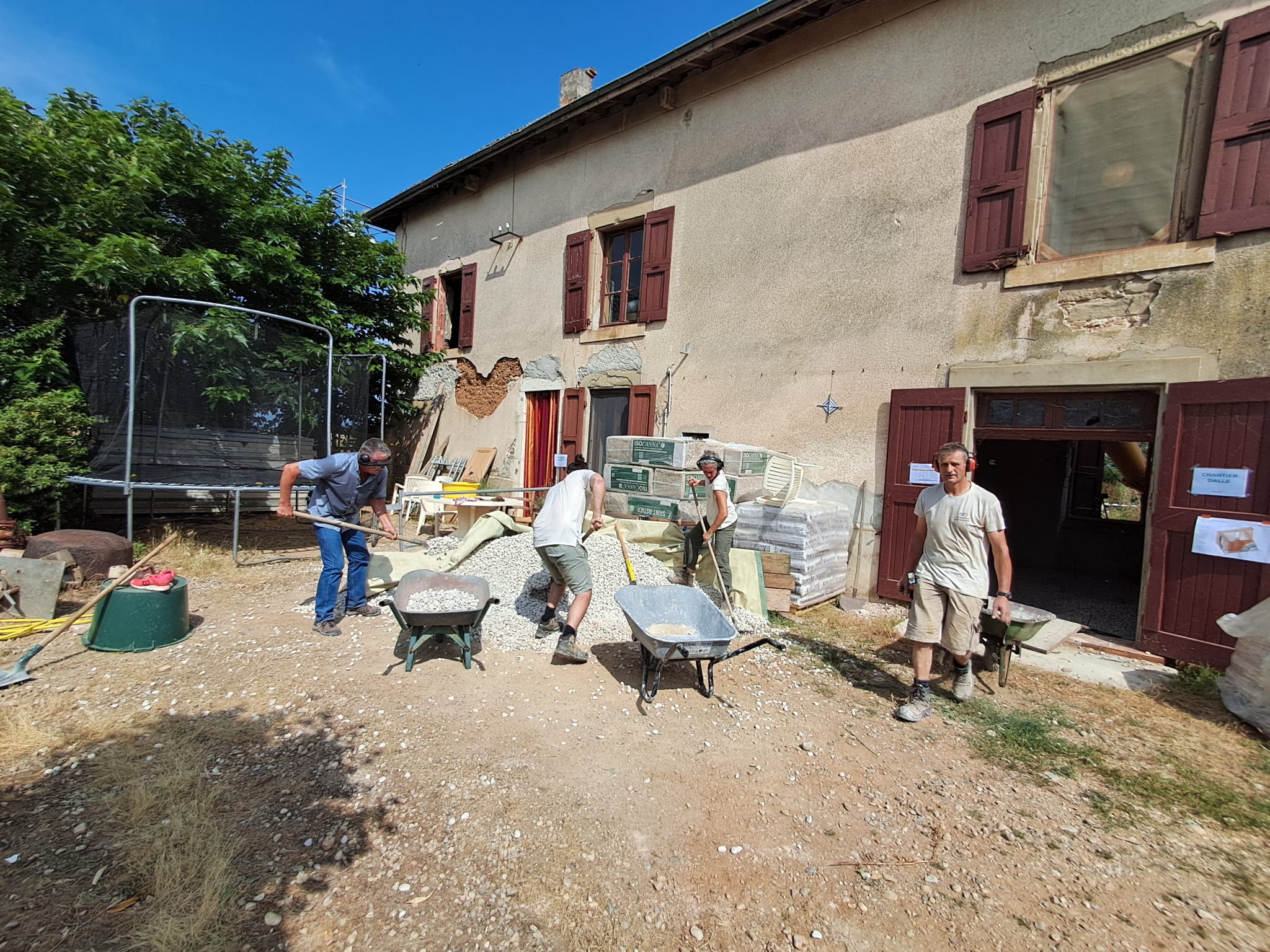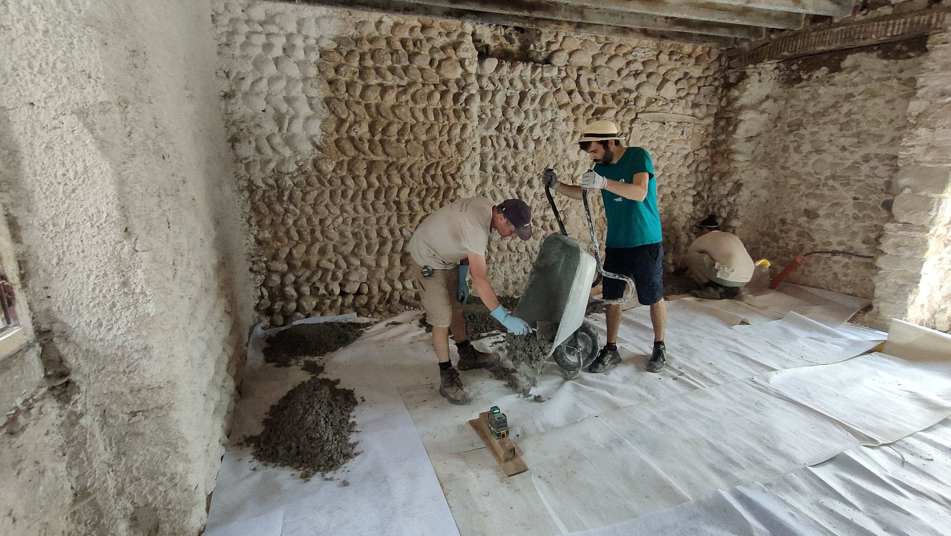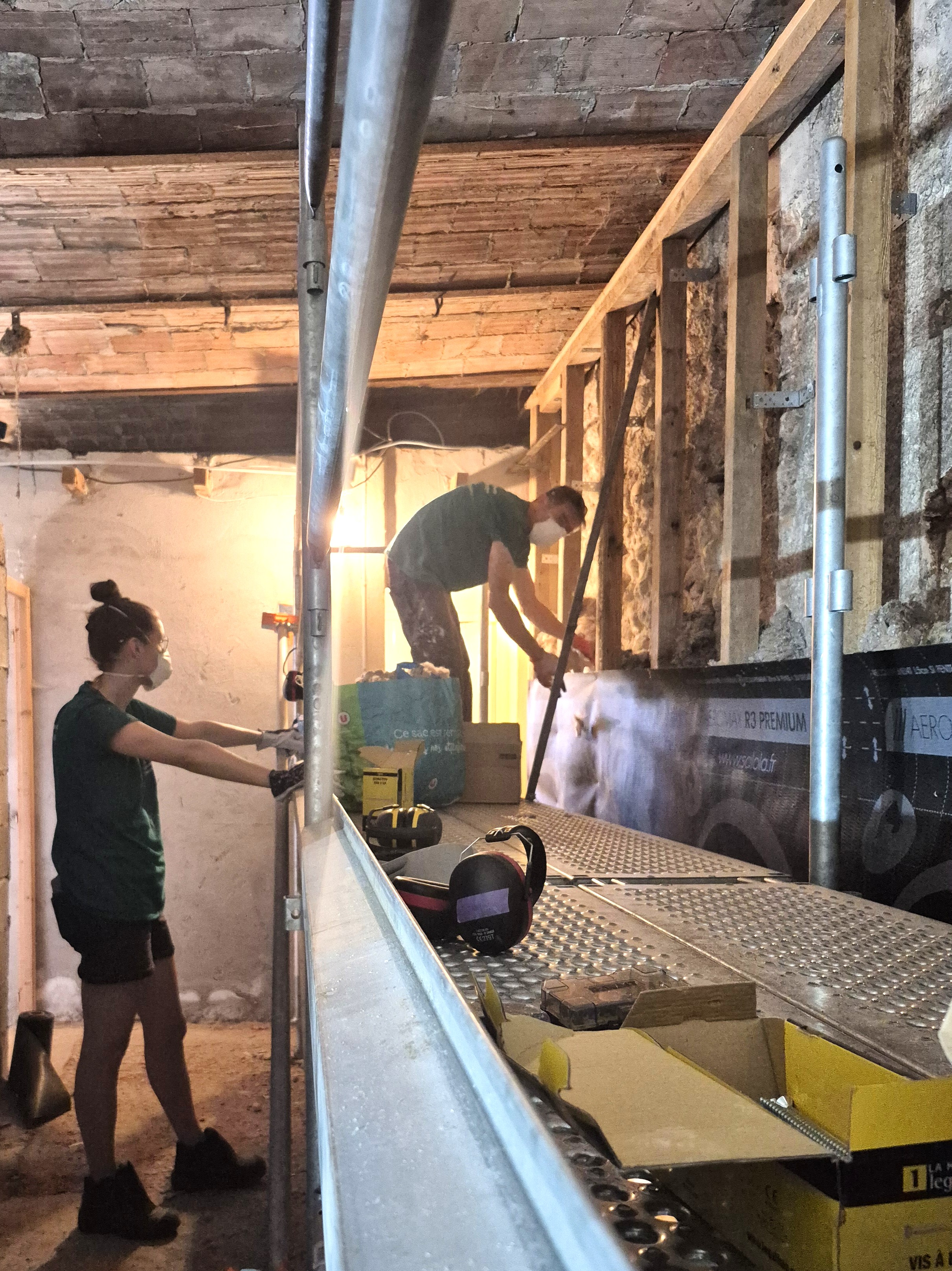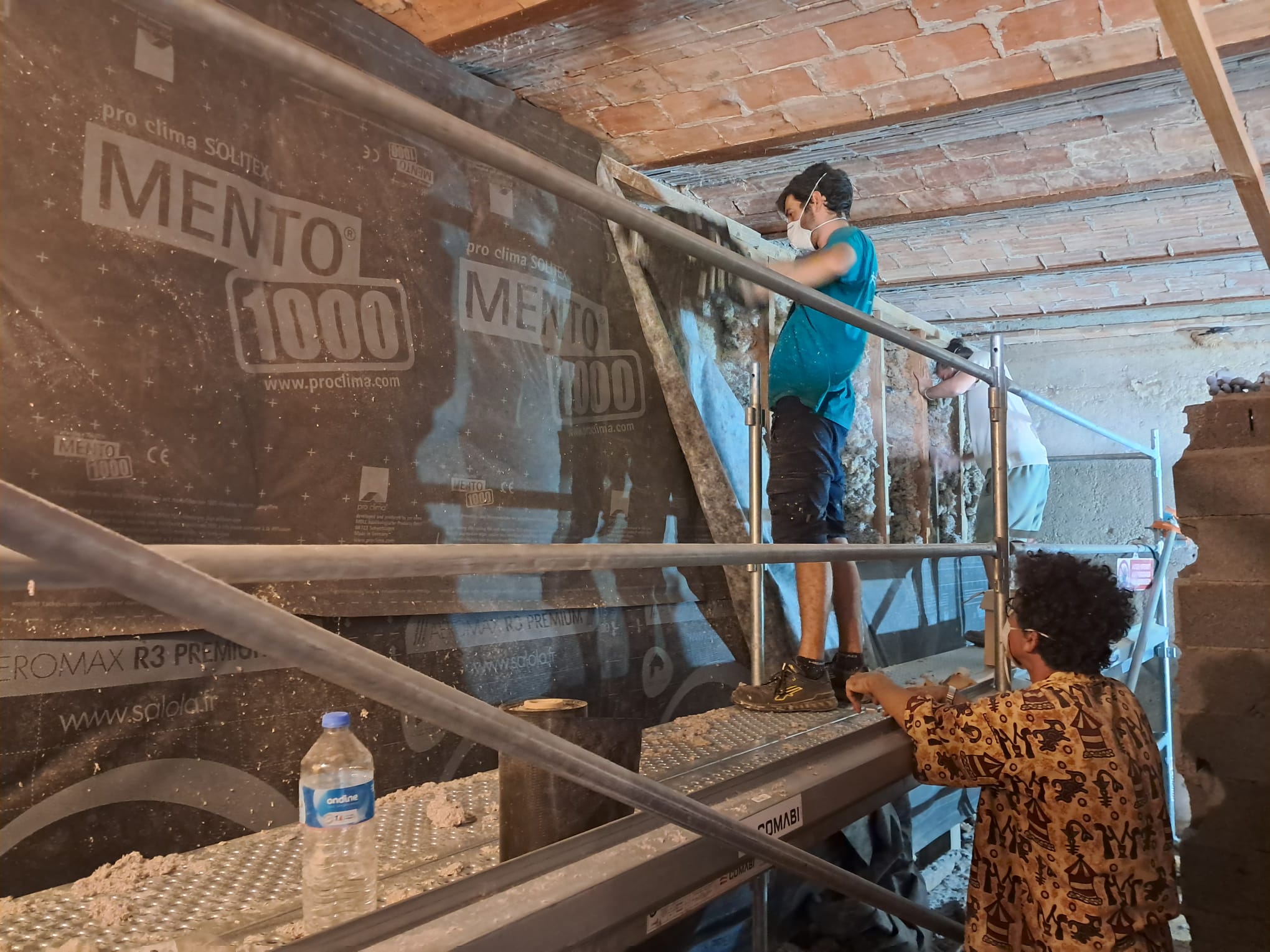- Réalisation des travaux prévus : le chantier dalle a été terminé le jour J (hérisson + dalle chaux chanvre) ; côté ITE une petite partie restait à faire à l'issue de la journée, et a été finalisé par le propriétaire juste après.