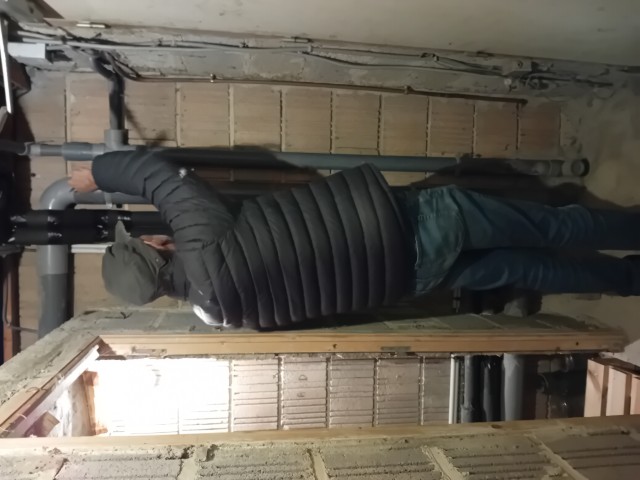 Les premiers travaux de plomberie ont consisté à préparer les arrivées et évacuations d'eau. Ils seront finalisés au R+1 après la mise en place d'une natte d'étanchéité et au RdC au moment de la pose des équipements de cuisine.