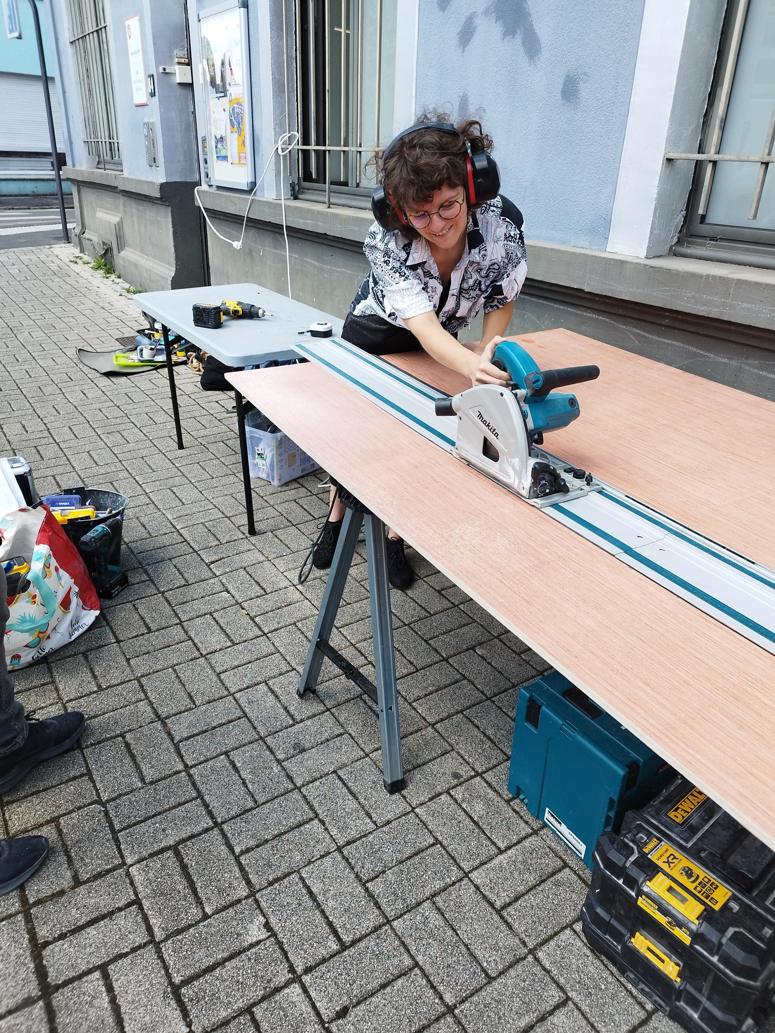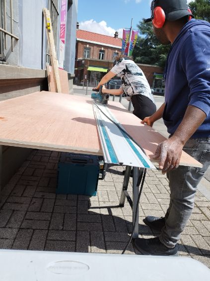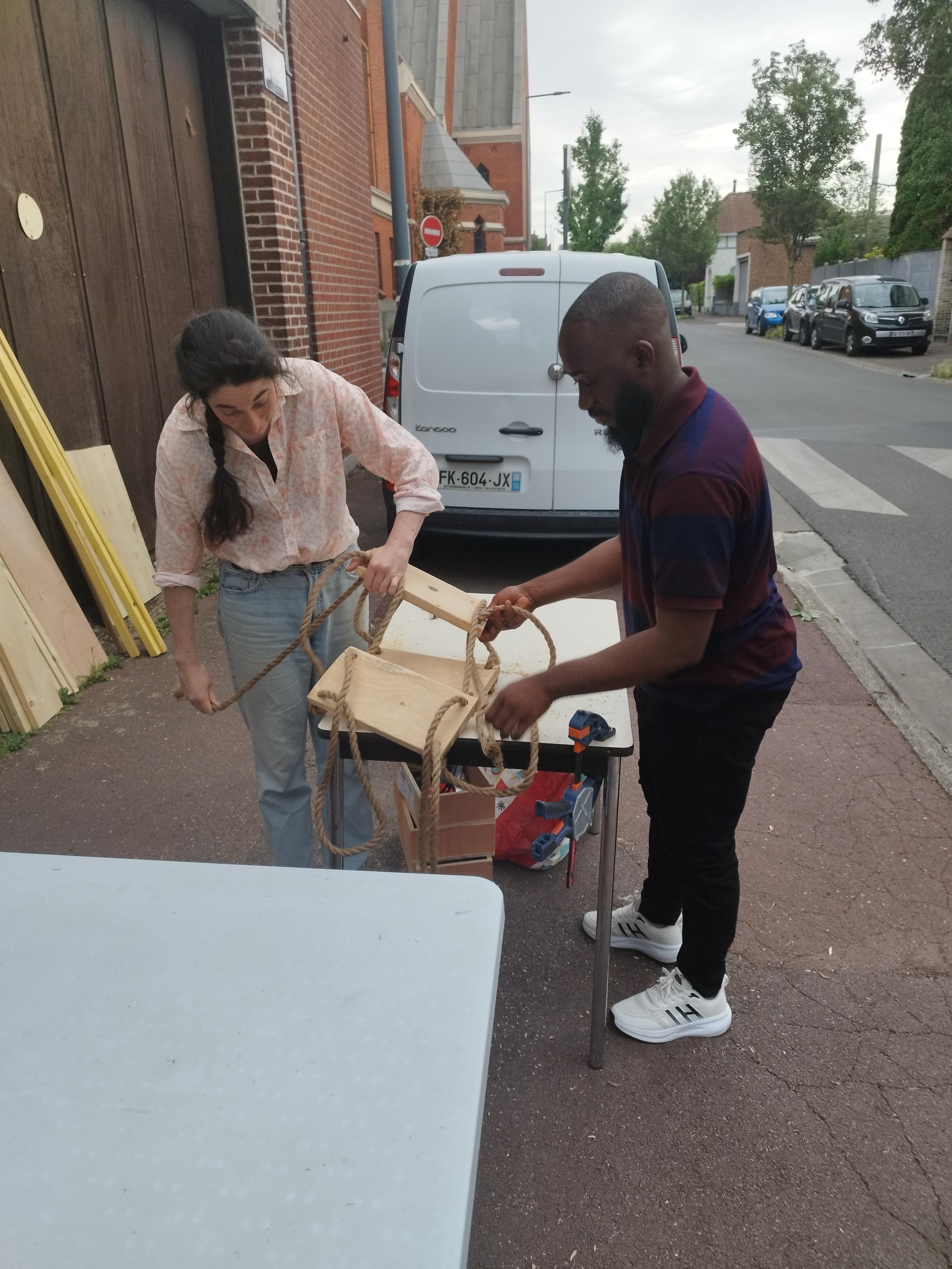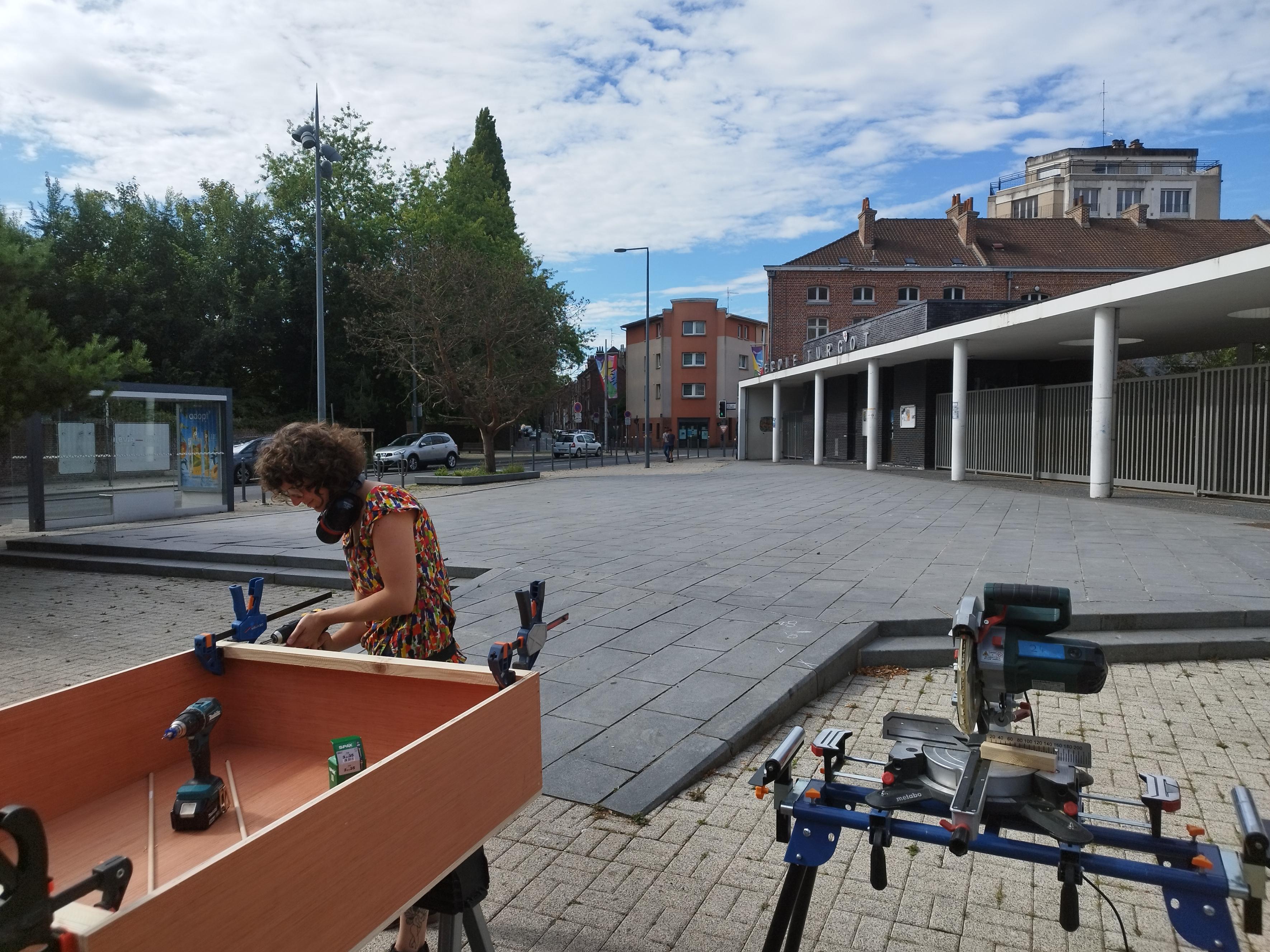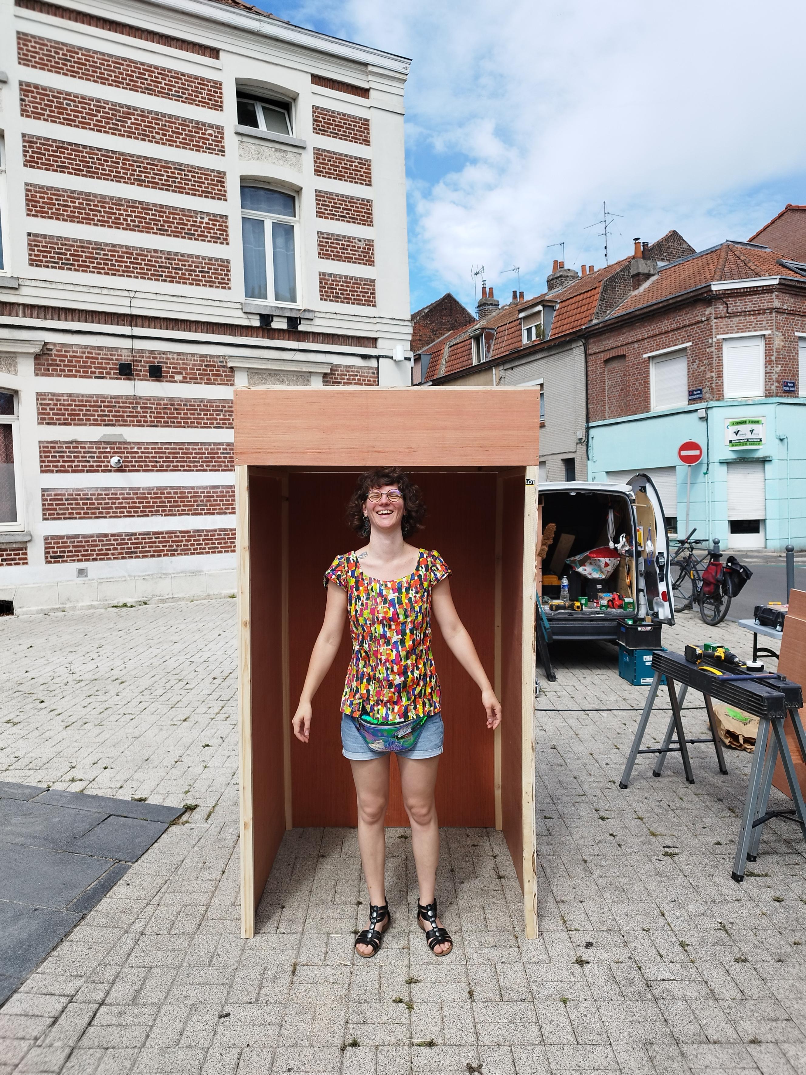 Le chantier s'est déroulé sur 3 journées début juillet, avec l'association L'Inter(s)tisse. La mobilisation a été compliquée du fait d'un manque de communication avec la deuxième association impliquée dans le projet, le Valdocco, qui accompagne des jeunes. Cependant nous avons pu mener à bien le projet avec des personnes de l'Inter(s)tisse et des bénévoles. La cabine à rêve a ensuite été décorée avec des enfants sur des événements durant l'été.