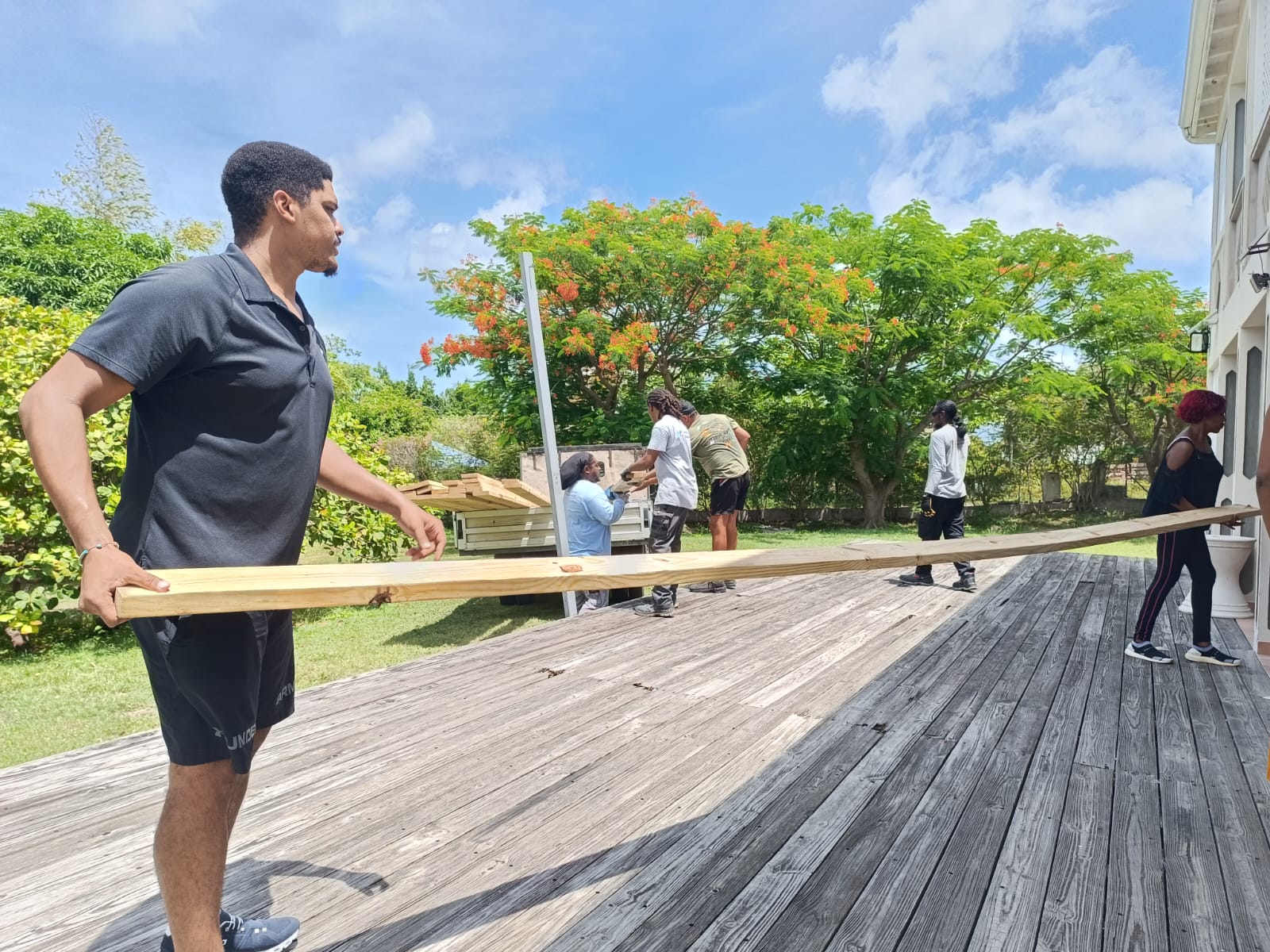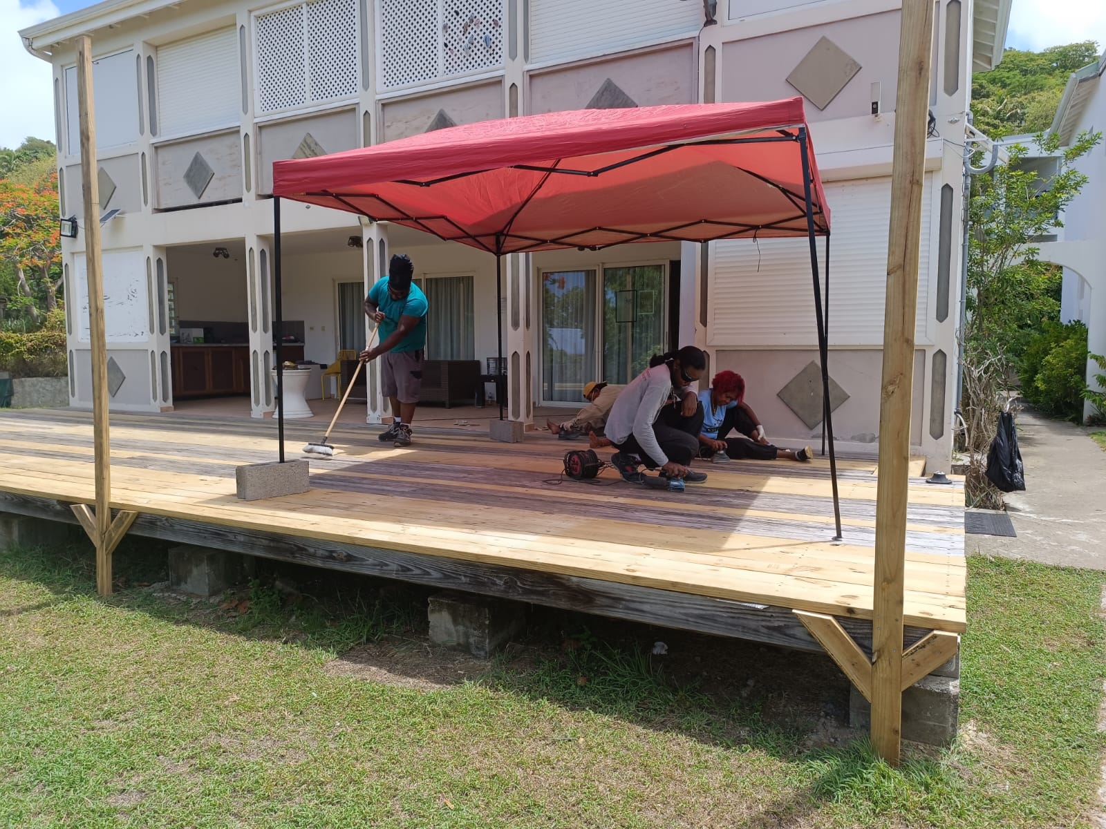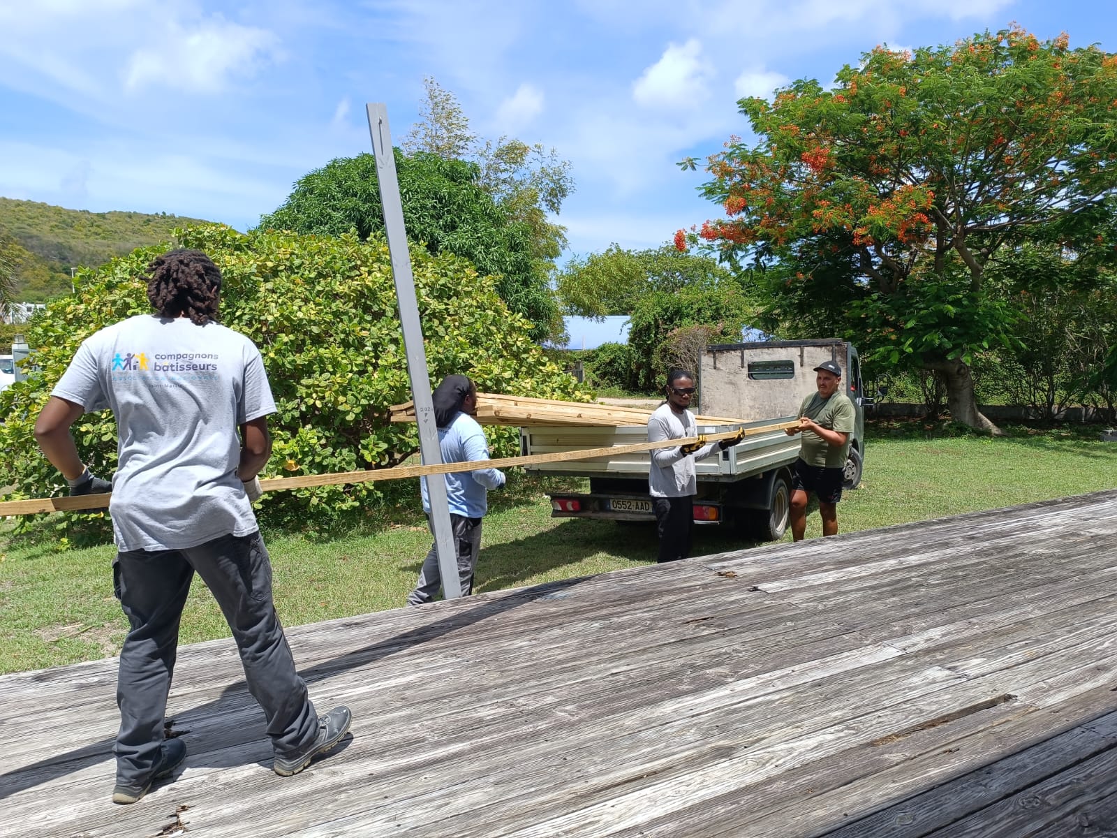 Nous avons accueillis 2 jeunes et 5 personnes éloignées de l'emploi inscrites dans le cadre d'un parcours de remobilisation sociale et professionnelle sur le chantier, qui a été mené du 18 au 22 aout 2025. Nous sommes également revenu le 15 et 16 septembre pour poser une couche de peinture et assurer les finitions.