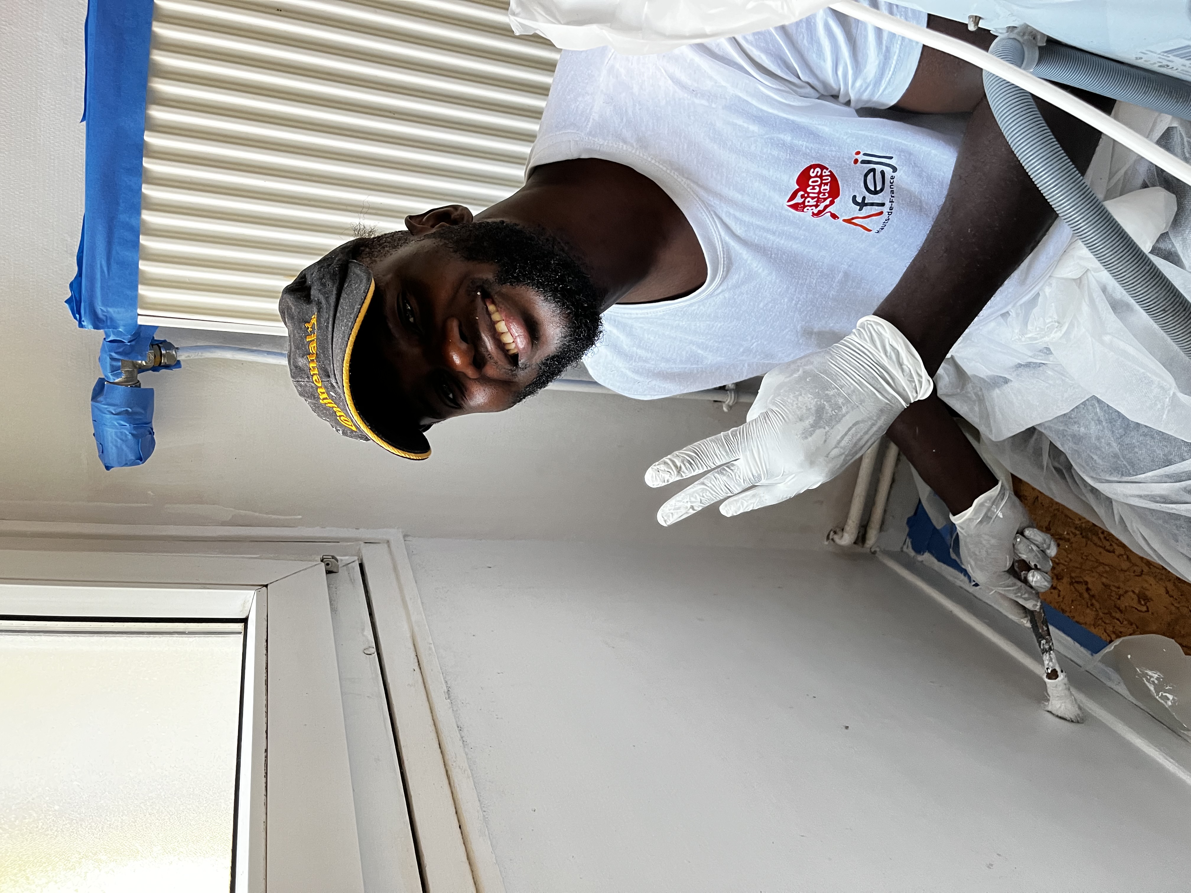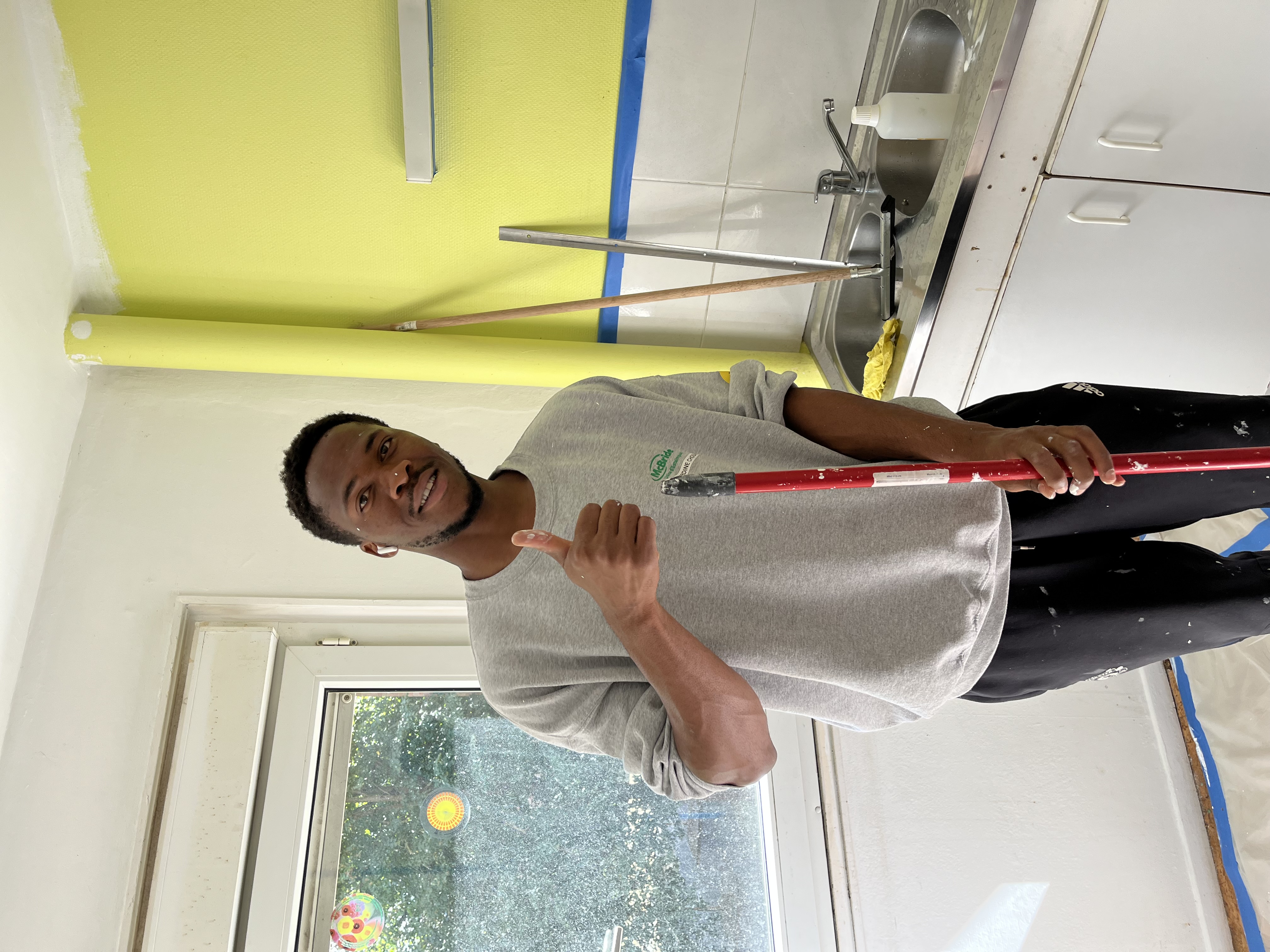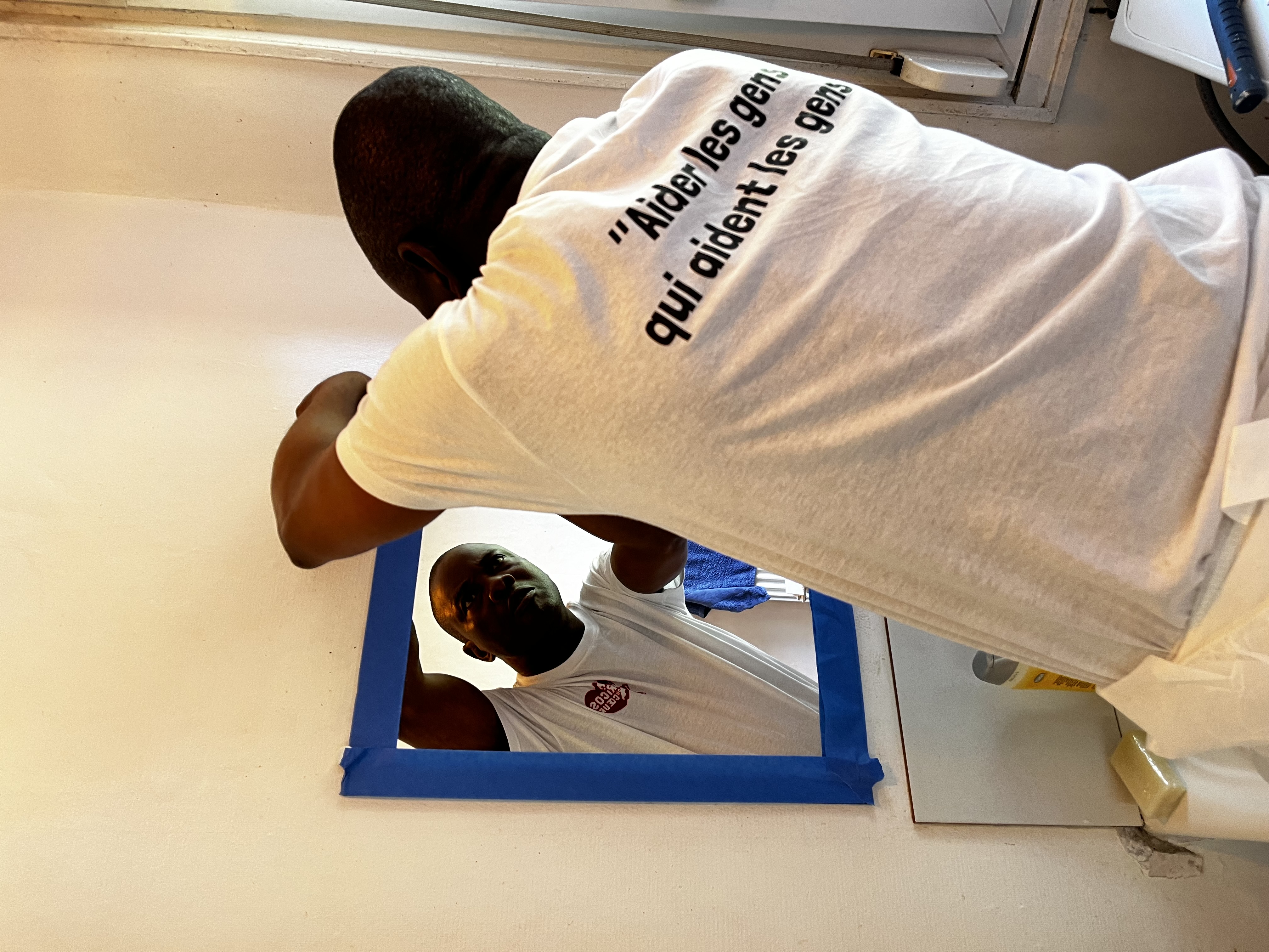 Dix ! C'est la dixième chantier solidaire pédagogique du projet IWAZ. Une belle journée placée sous le signe de l'entraide et de l'apprentissage avec l'arrivée de deux nouveaux volontaires. Une belle opération d'embellissement de l'appartement d'une personne accompagnée par l' AFEJI. Durant ce chantier, nous avons repeint tous les murs et plafonds mais aussi réparer et remplacer les carrelages autour de la baignoire. Encore un beau succès pour ce chantier qui a donné le sourire à l'occupante des lieux.