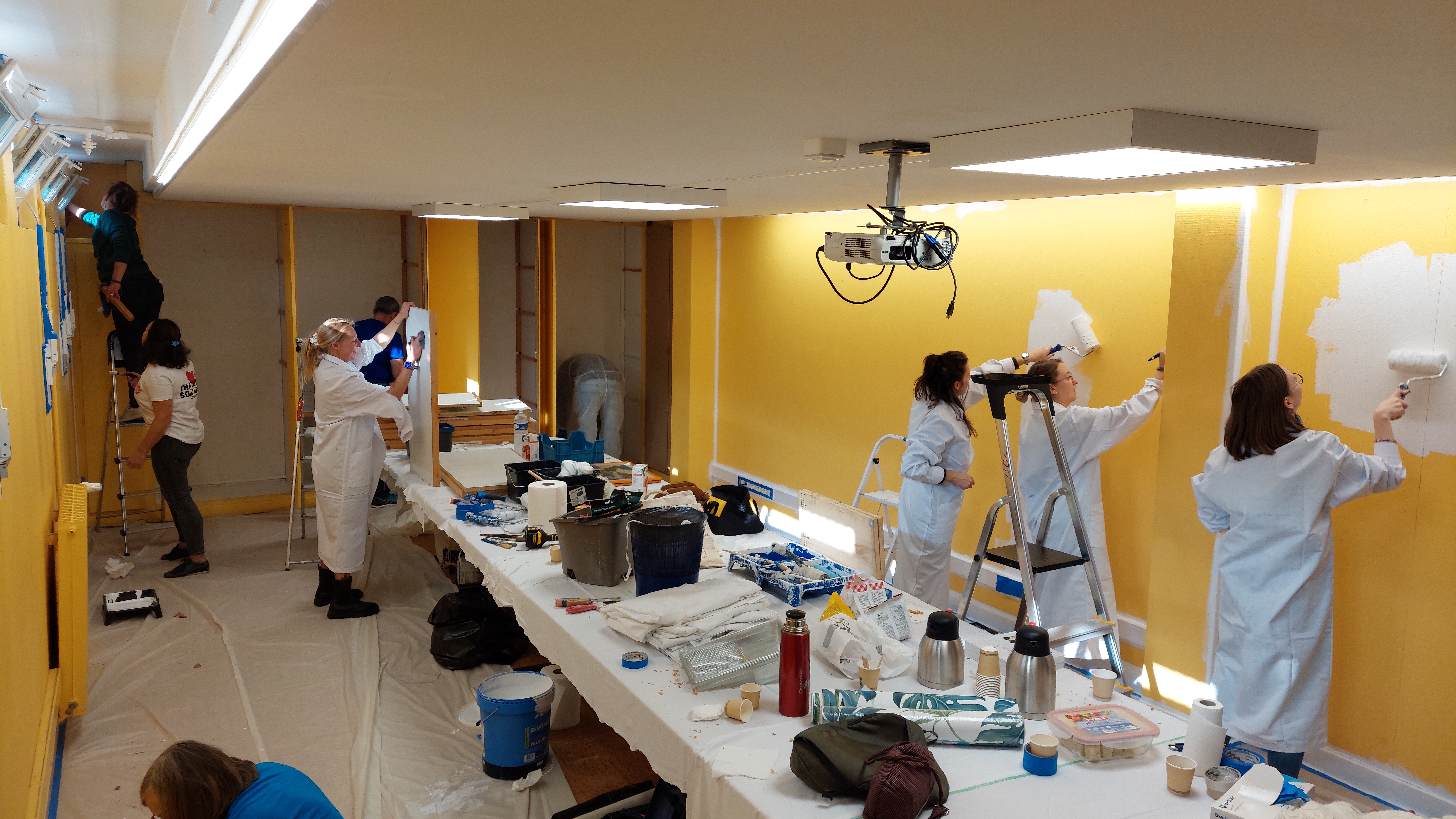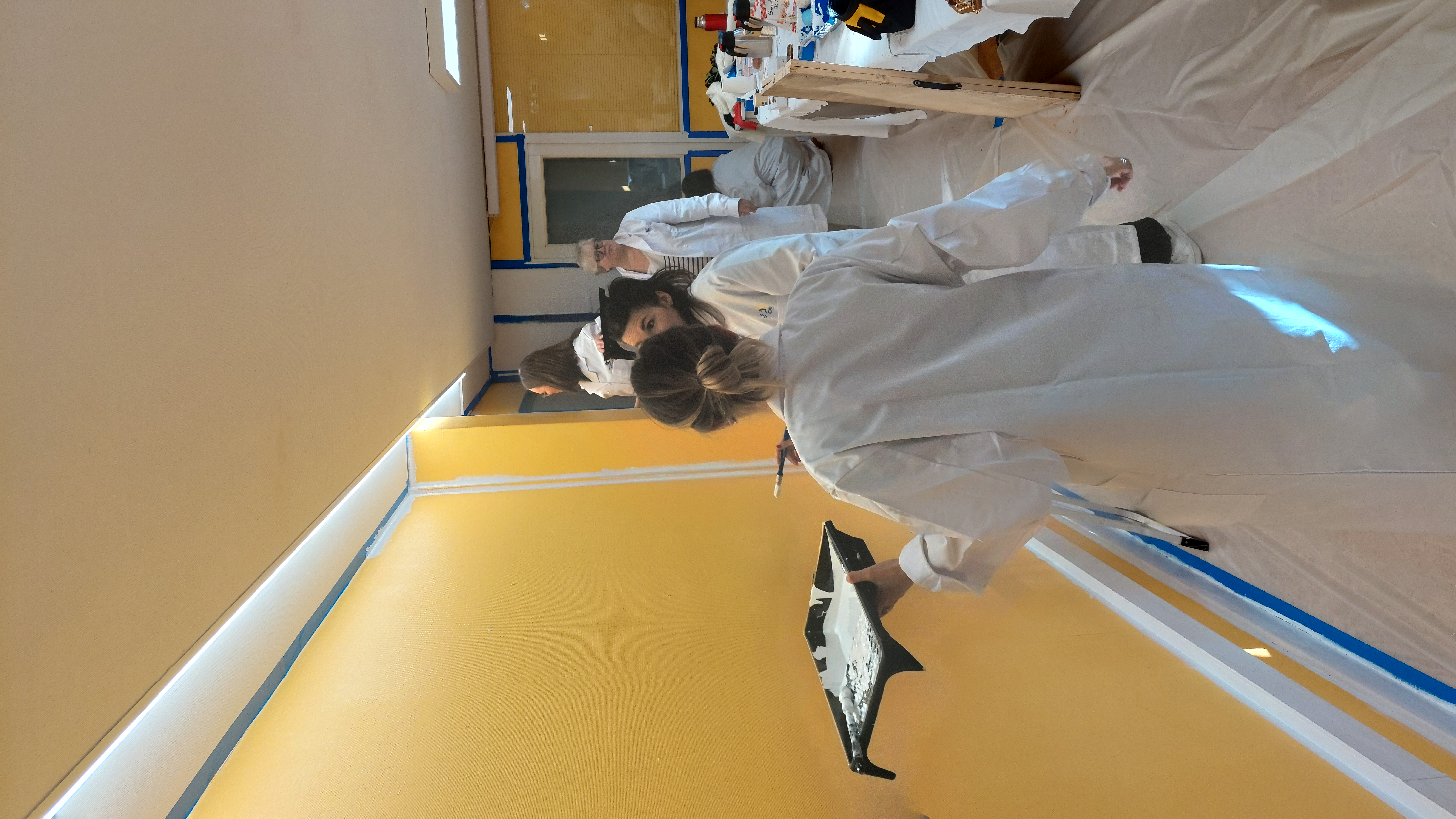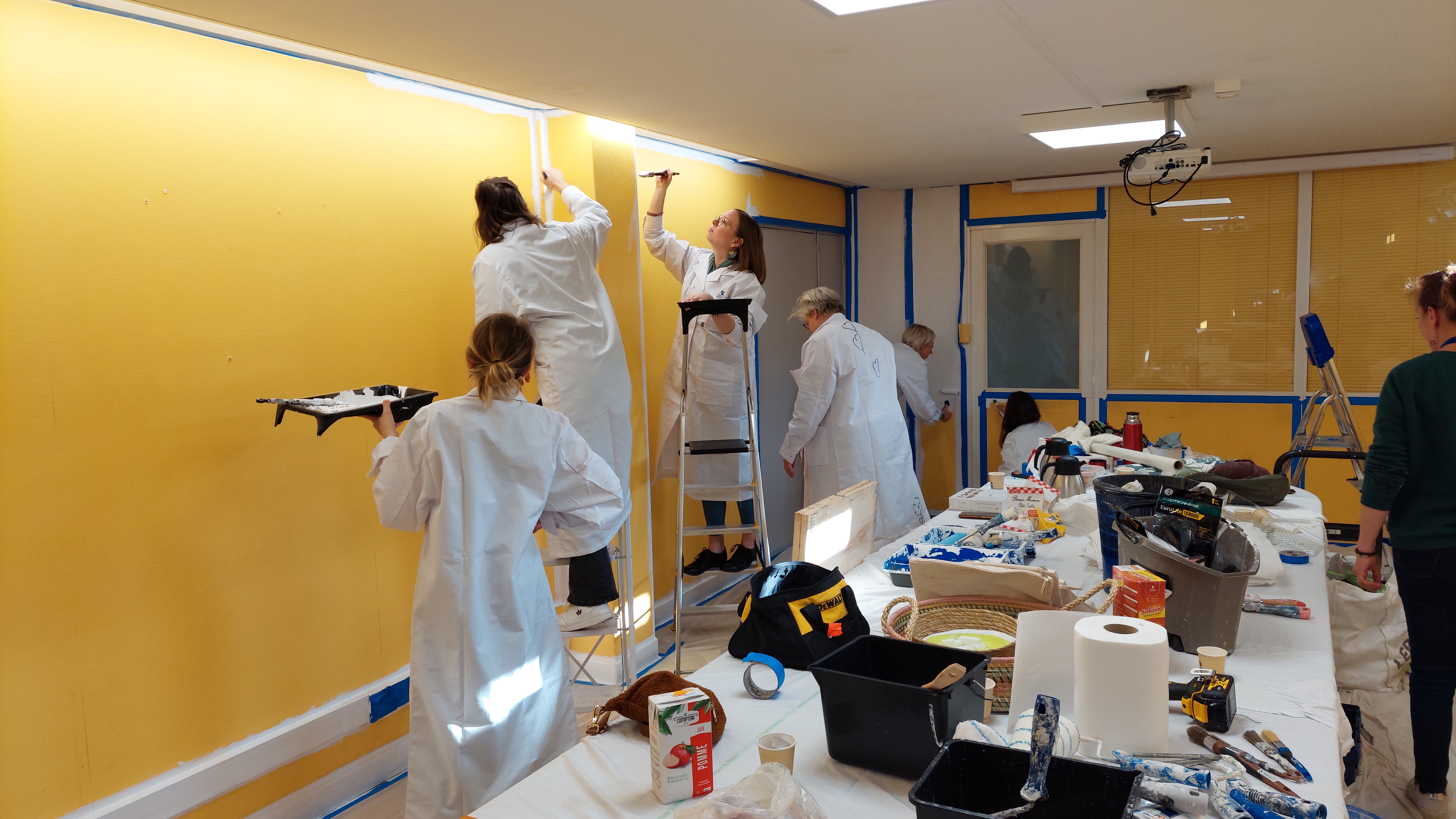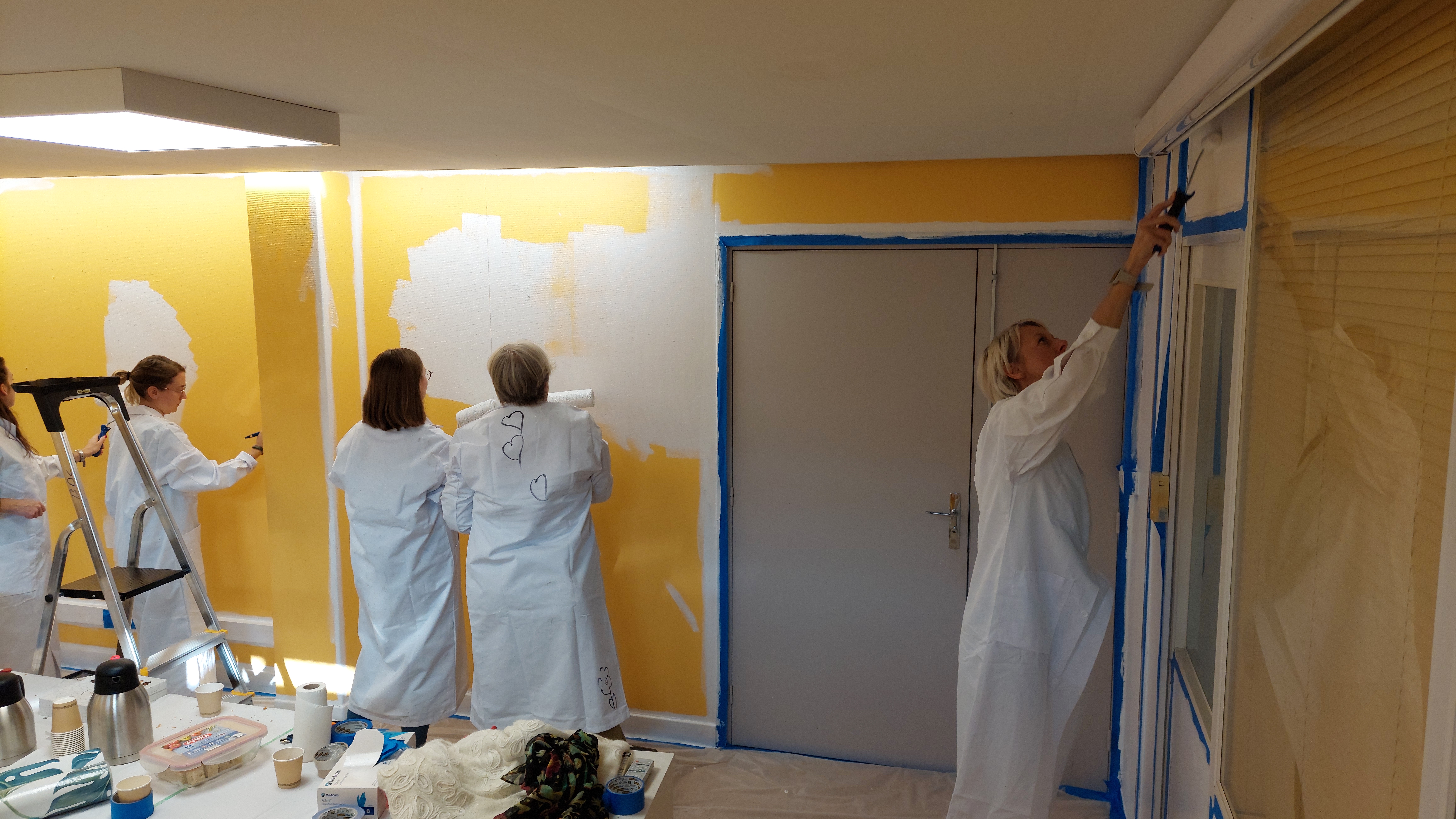 De plus, tout au long de la journée, plusieurs salariées de l'établissement de santé se sont relayées, troquant leurs claviers contre rouleaux et pinceaux, pour redonner vie à cet espace.