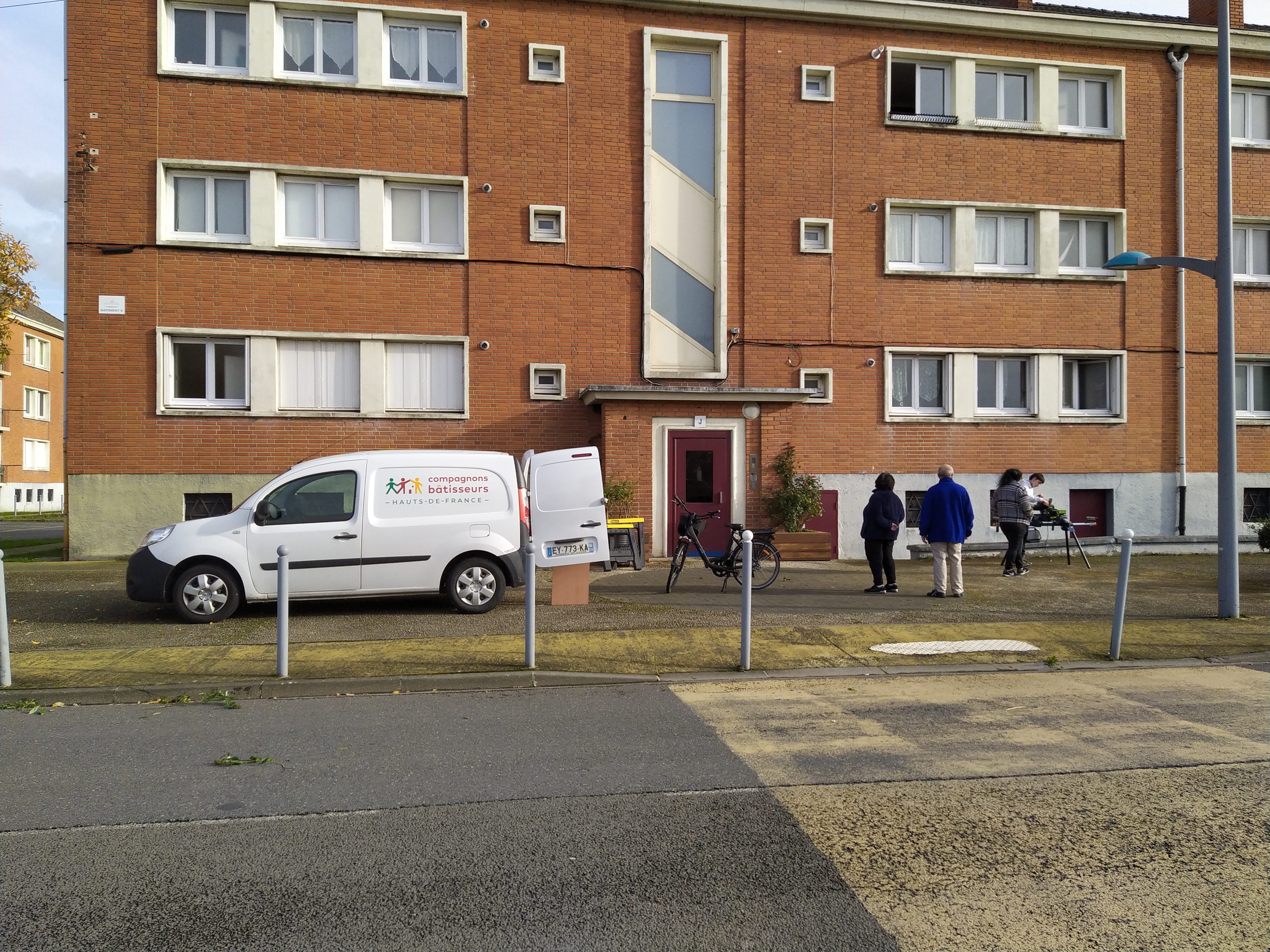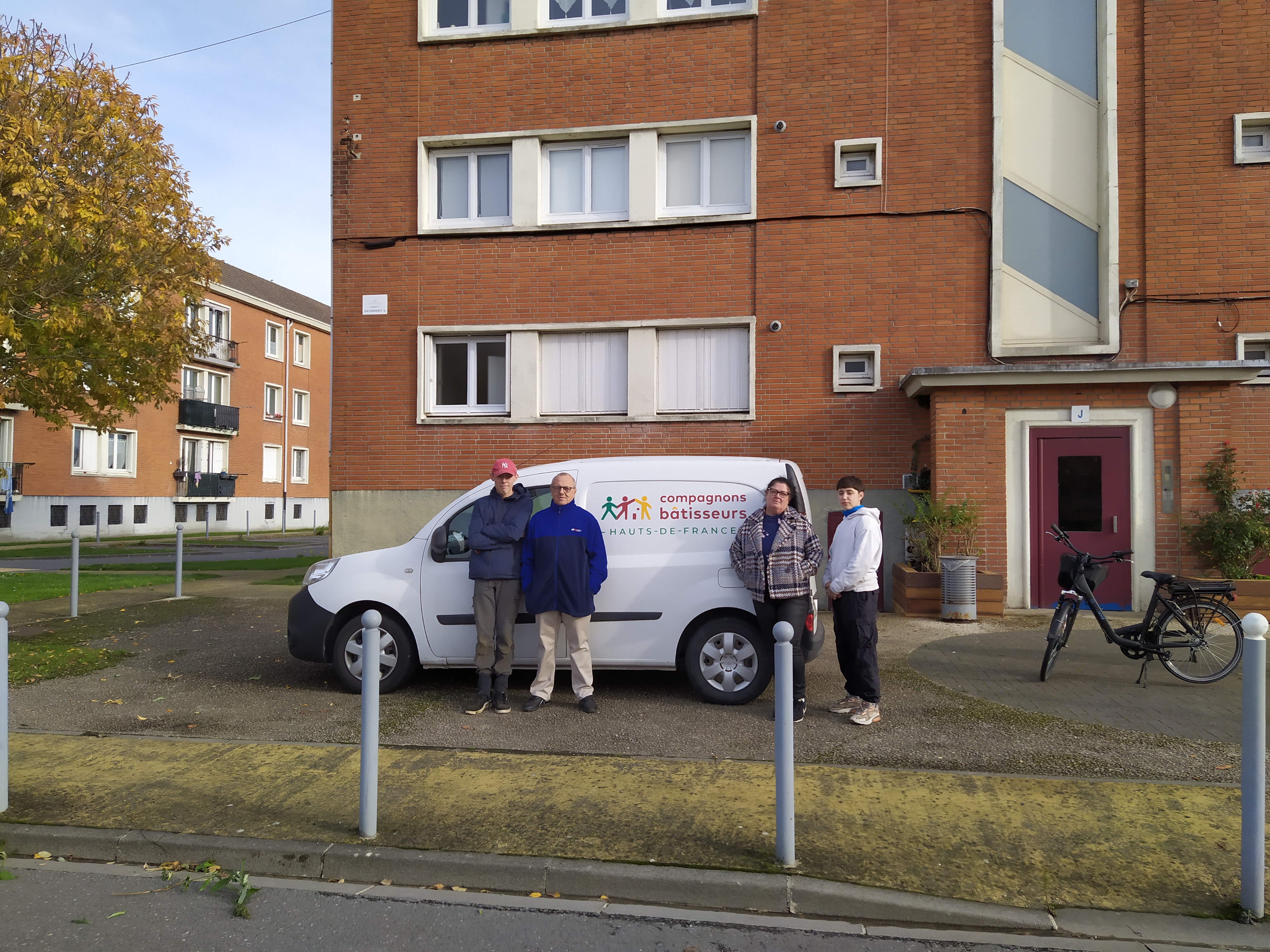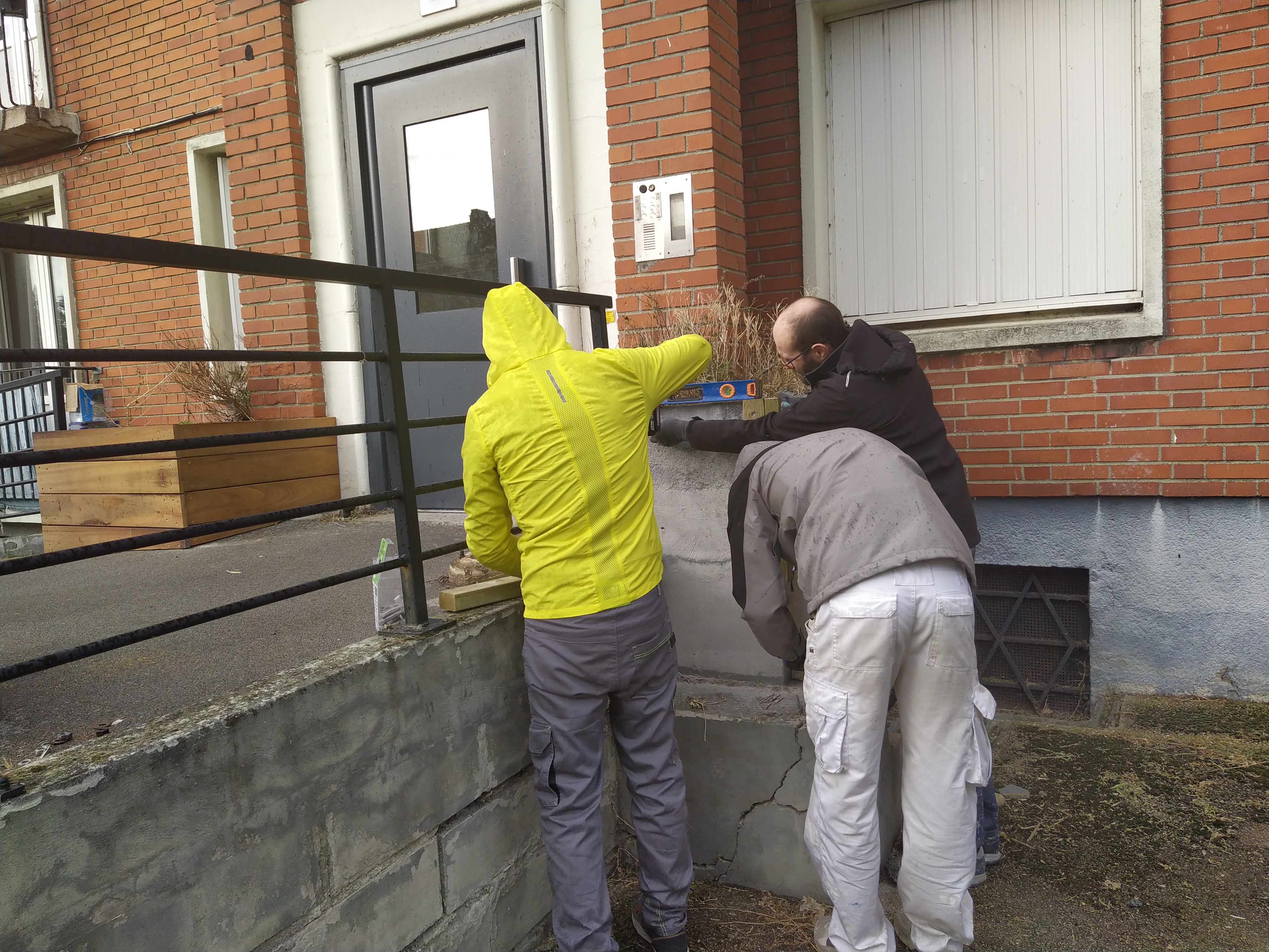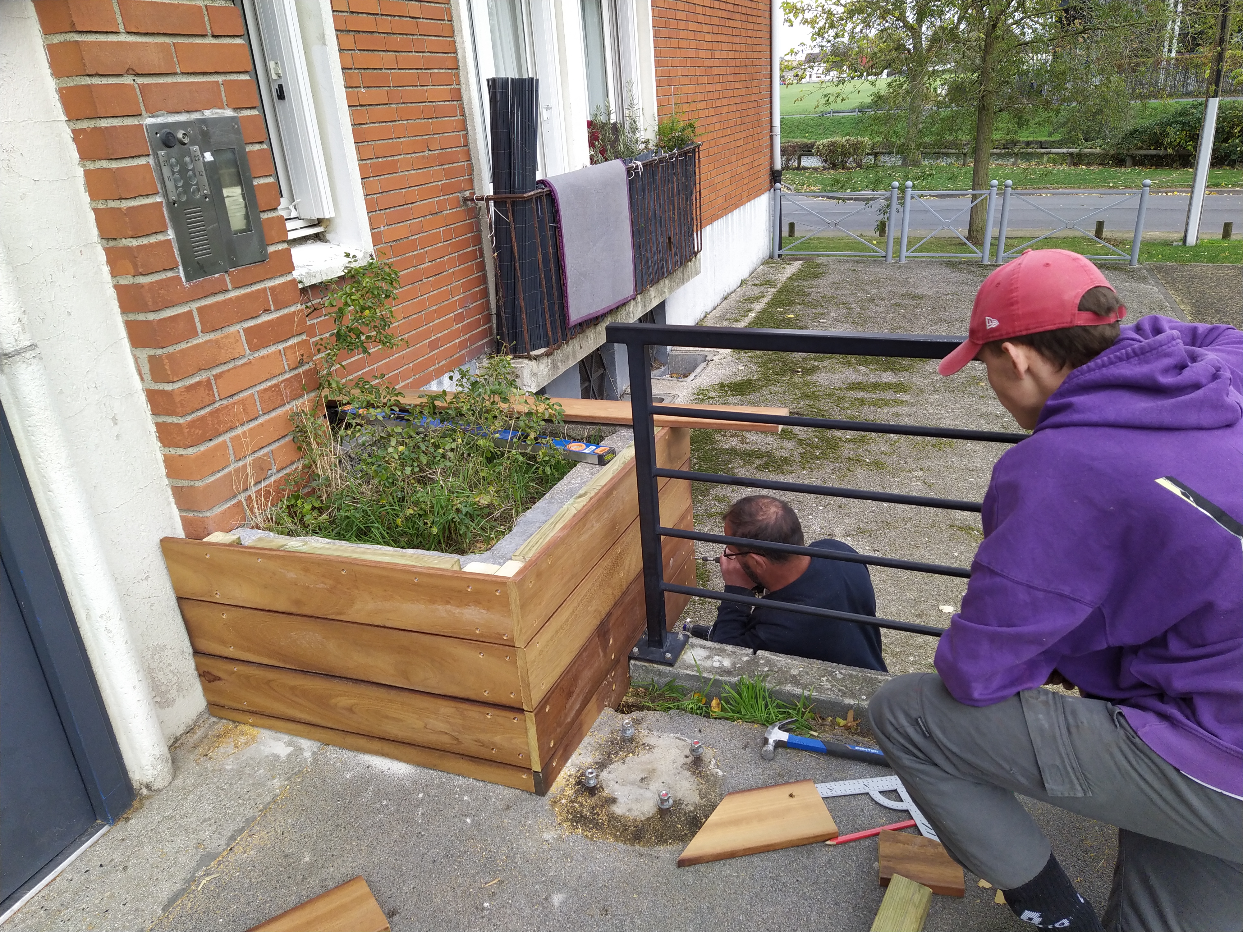L’équipe des Compagnons Bâtisseurs était également fortement mobilisée : deux animateurs techniques, deux services civiques, ainsi qu’un bénévole venu spécialement de Lille ont accompagné les participants à chaque étape. Dans la bonne humeur et l’entraide, nous avons réalisé l’habillage bois des jardinières existantes.
