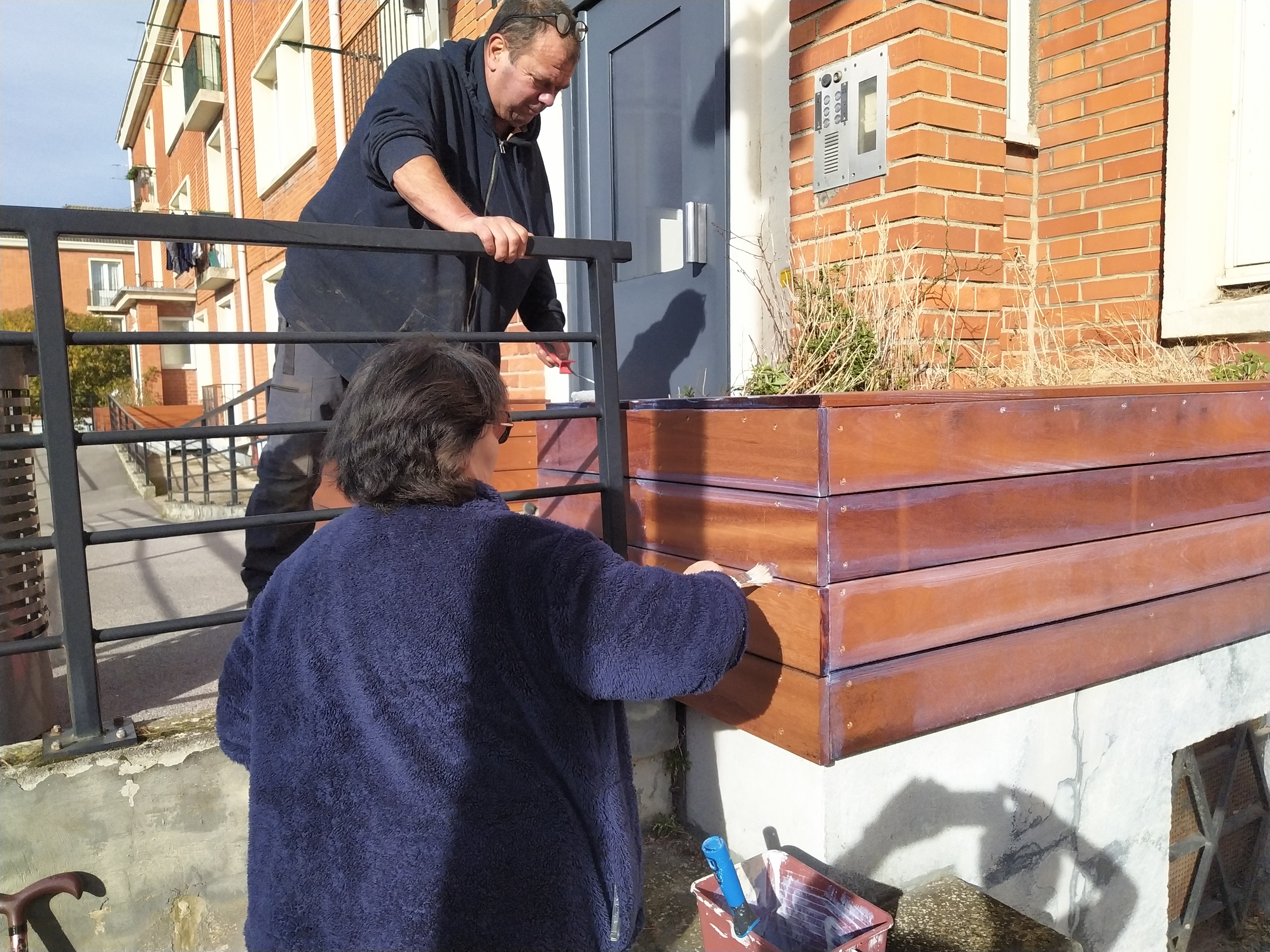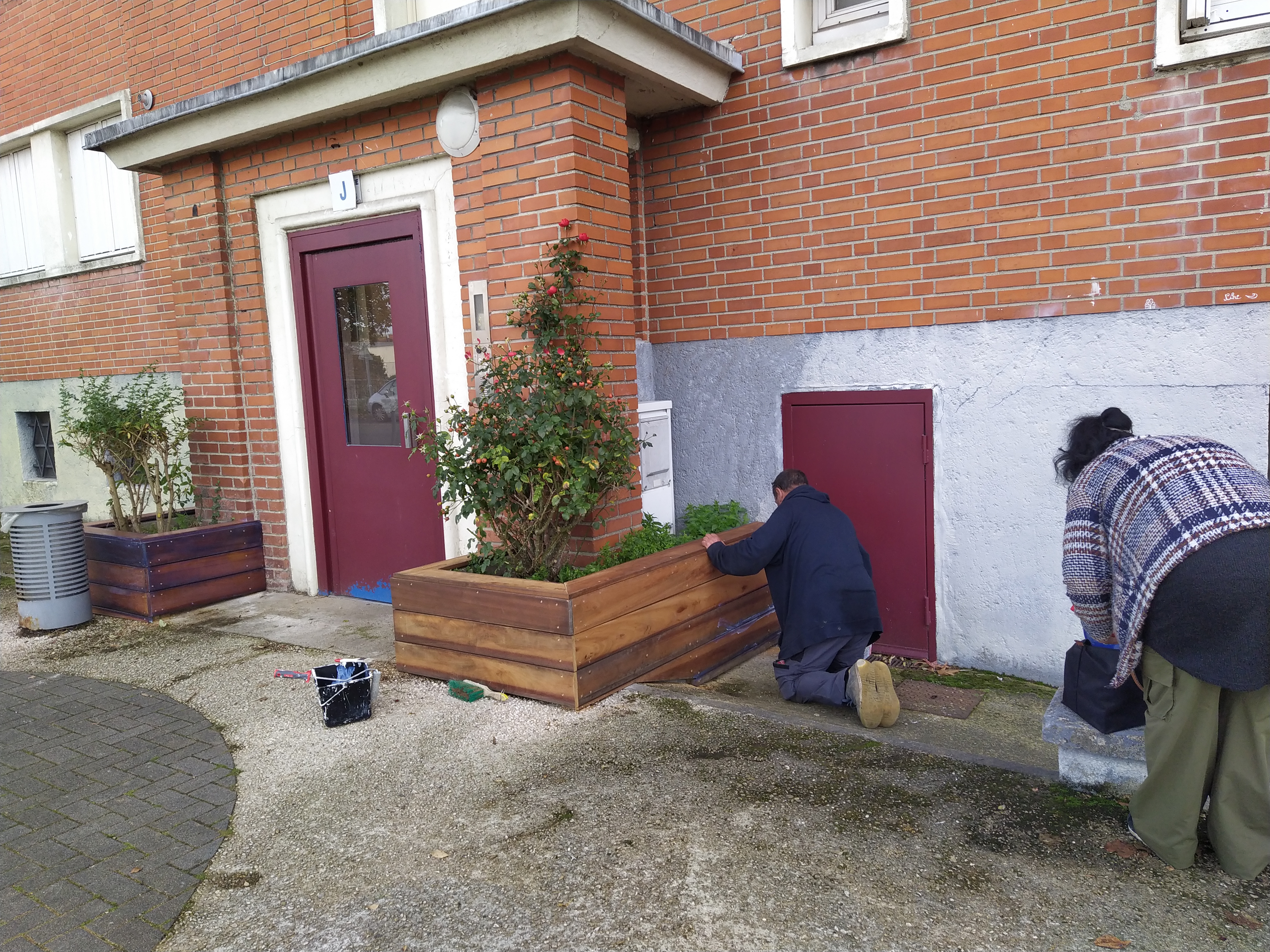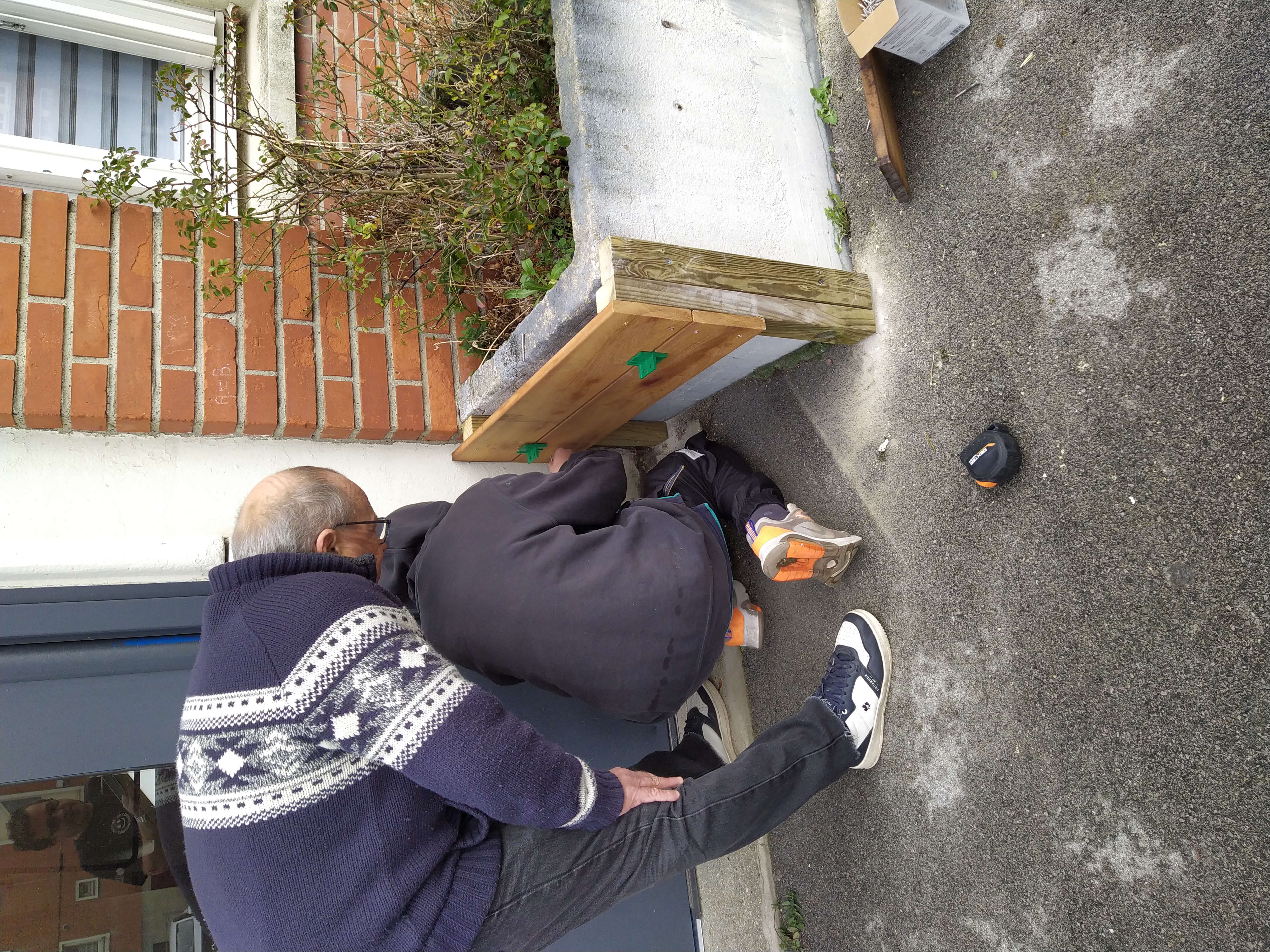 Grâce au don de matériaux des Bricos du Cœur — un bois de très belle qualité — nous avons pu construire des habillages solides, esthétiques et durables. Leur contribution a été déterminante dans la réussite du projet. Aujourd’hui, les habitants sont très heureux du résultat : les entrées d’immeubles sont transformées, plus accueillantes, et les jardinières sont prêtes à être réinvesties pour de nouvelles plantations.