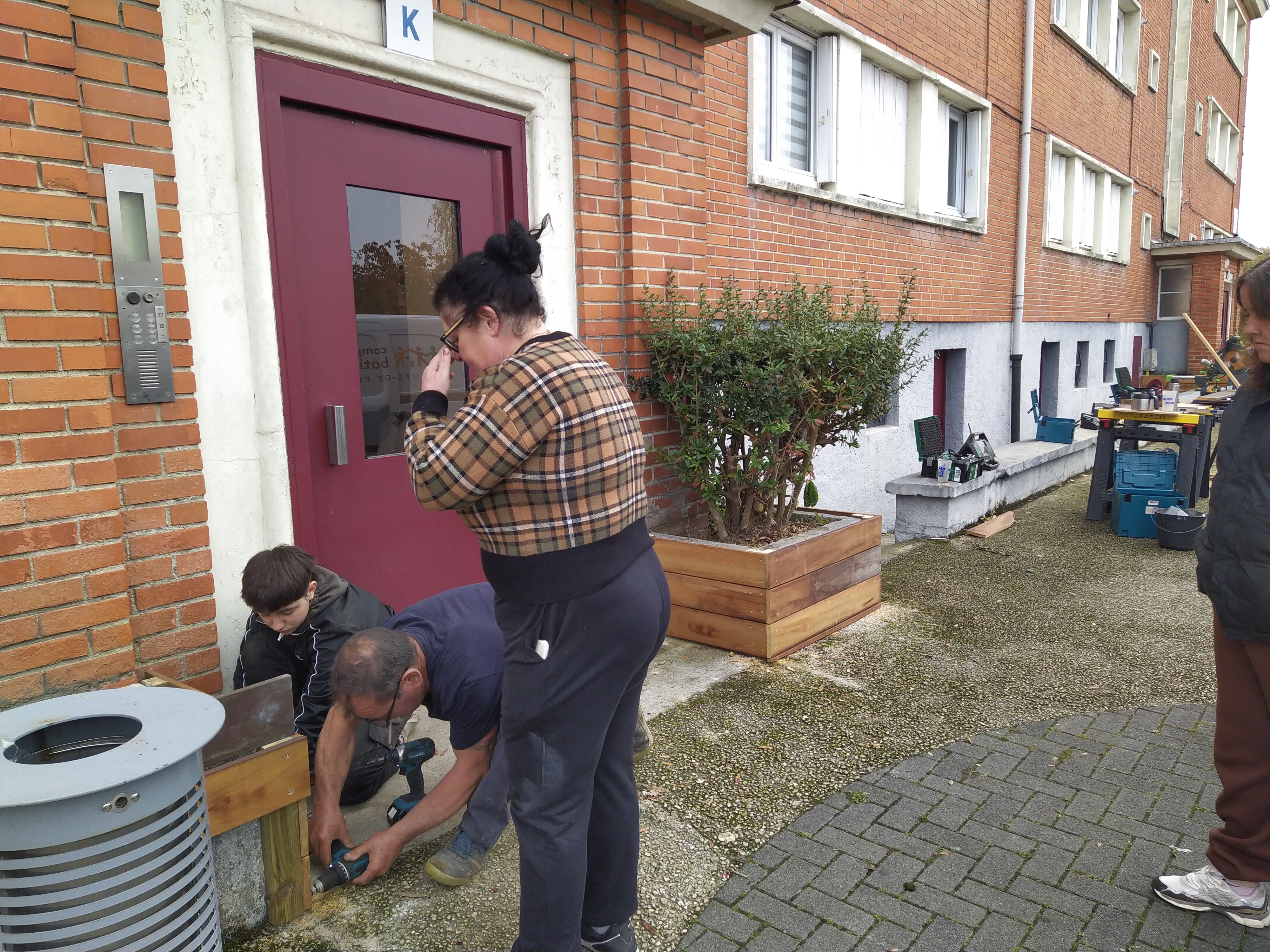 Le chantier s’est très bien déroulé malgré une météo parfois capricieuse, marquée par de fortes pluies et des rafales de vent. Tout au long de la semaine, nous avons pu compter sur une belle participation des habitants de la Cité Denis Cordonnier, motivés par l’envie d’améliorer leur cadre de vie et de redonner vie aux jardinières laissées à l’abandon.