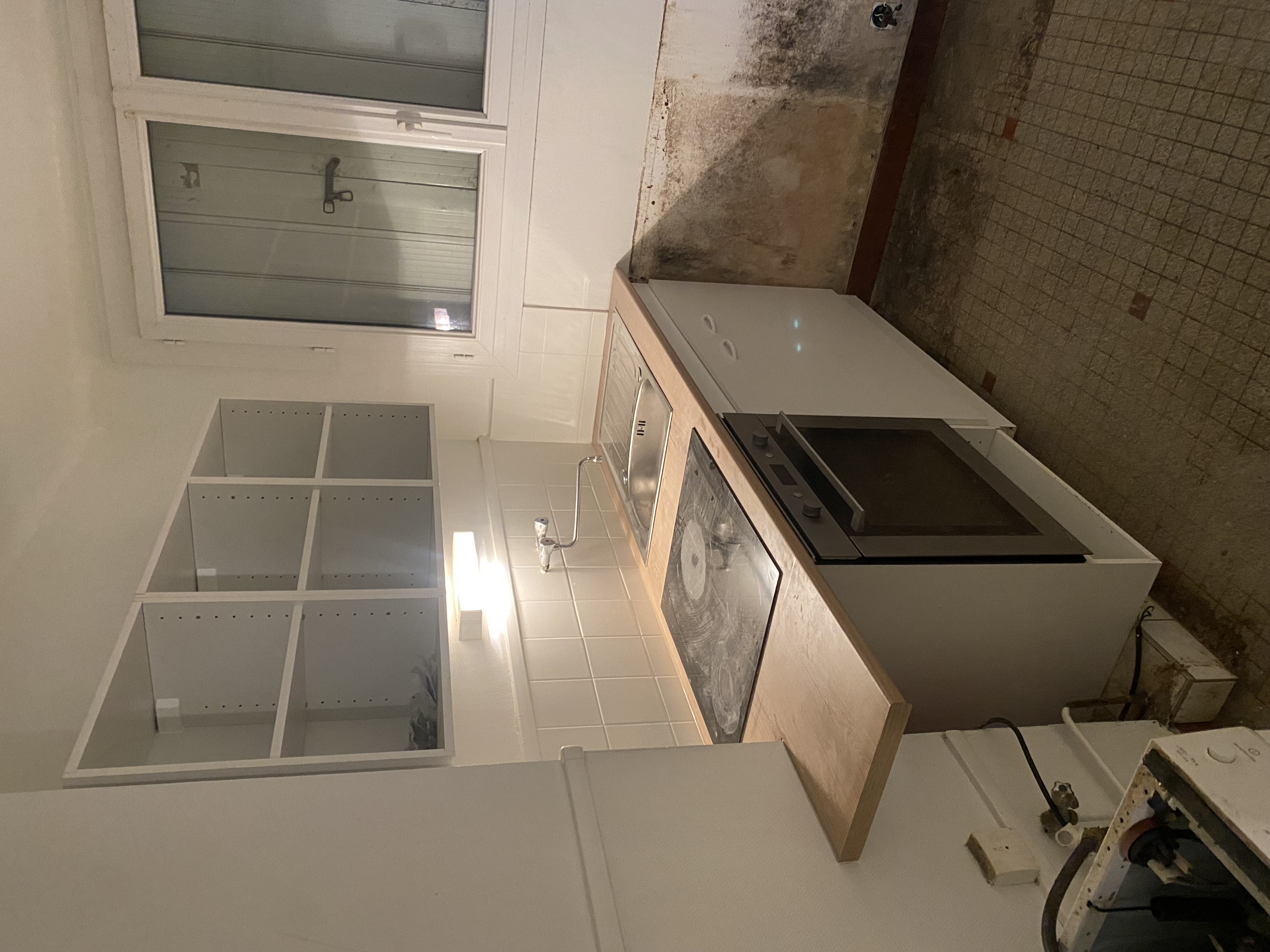 Le chantier s'est déroulé sur 2 jours. L'entreprise a posé une nouvelle cuisine avec les ancien équipements et un nouvel agencement. Logement prêt à accueillir une nouvelle famille !